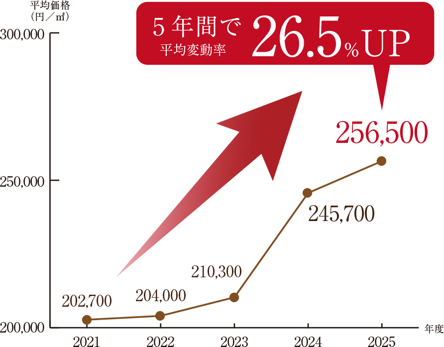 2025年度の公示地価でも大きく上昇しました。
