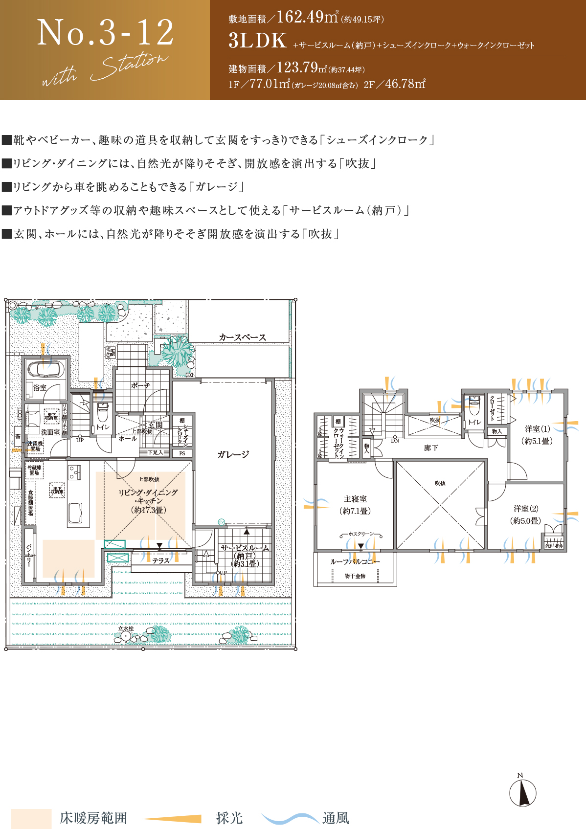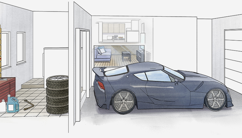 趣味を追求するガレージ。家族とつながるキッチン。暮らしに役立つ土間。住まいの中で自然に浸るパティオ。